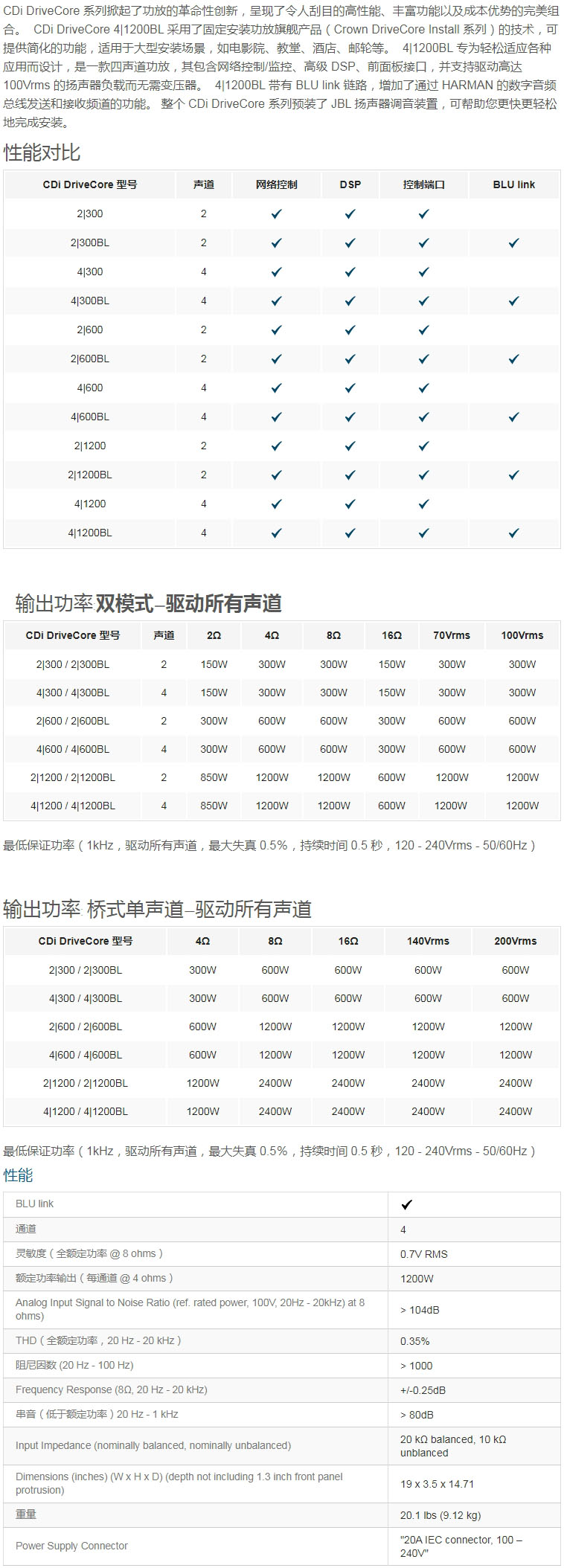 模擬+BLU link 輸入,4 個(gè)聲道,1200W/輸出聲道