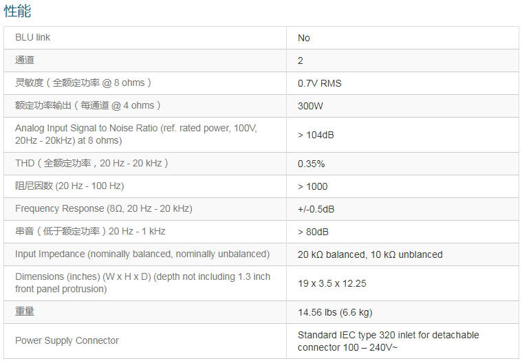 模擬輸入,2通道,300W/輸出通道,功放