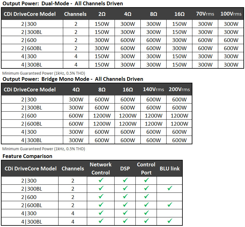 CDi DriveCore系列掀起了功放的革命性創(chuàng)新,呈現(xiàn)了令人刮目的高性能、豐富功能以及成本優(yōu)勢(shì)的完美組合。CDi DriveCore采用哈曼旗艦固定安裝功放(Crown DriveCore Install系列)技術(shù),簡(jiǎn)化了功能,幾乎適用于任何中小型固定安裝、電影院、零售店等應(yīng)用場(chǎng)合。CDi DriveCore系列設(shè)計(jì)旨在各種應(yīng)用場(chǎng)景中運(yùn)用自如,擁有2或4通道配置,以及網(wǎng)絡(luò)控制/監(jiān)控、高電平DSP、前面板界面等,且無需外接變壓器也能驅(qū)動(dòng)高達(dá)100Vrms定壓模式的揚(yáng)聲器。此外,使用BLU link(BL模式)還可改變通道數(shù)/輸出功率,實(shí)現(xiàn)了通過哈曼數(shù)字音頻總線收發(fā)通道的功能。